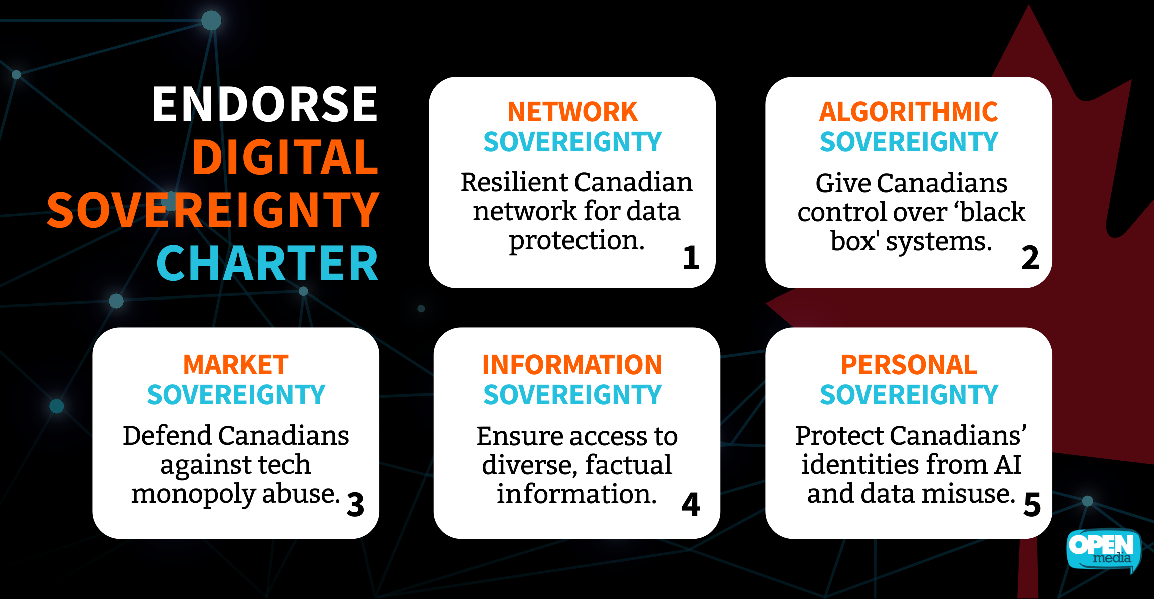 Canadians should be able to build and use a wide range of digital services that aren’t bought, blocked, or crushed by the anti-competitive practices of tech monopolies.
